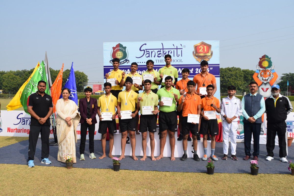 The 21st Senior Athletic Meet 2025-26 held today at Sanskriti The School also saw mentors and parents comepting with each other in Shuttle Race and Tug of war. The races were held amidst continuous cheering from the scholars who supported their mentors throughout.